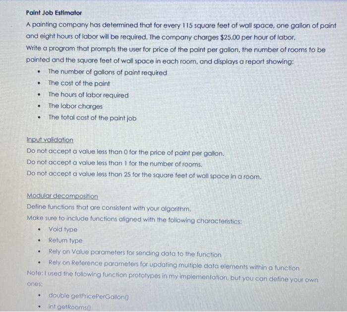 Solved Paint Job Estimator A Painting Company Has Determined Chegg Com